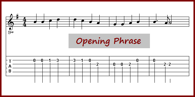 This familiar tune composed by Ludwig van Beethoven has a relatively simple melody (only 5 notes). It’s also a good tune for beginner guitarists to learn. Read this related introductory article about this tune for more background information.